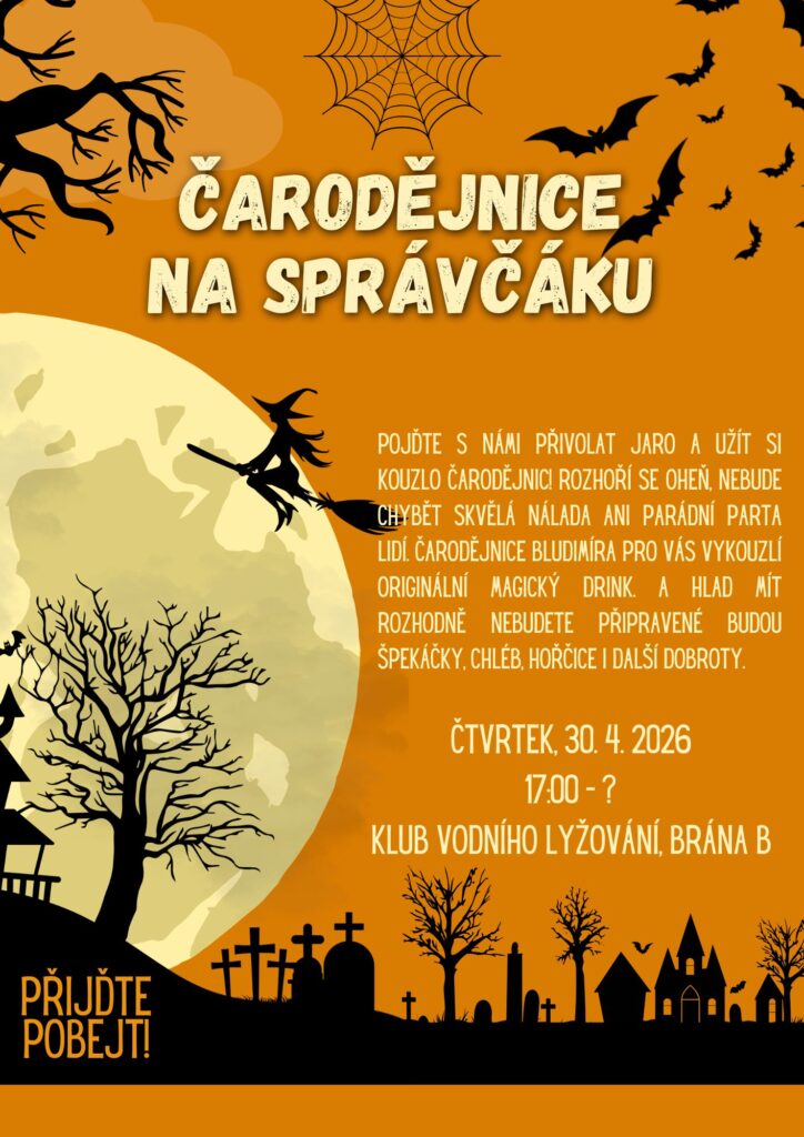 Akce zaměřená především na děti nabídne odpoledne plné her, kostýmů a čarodějnických aktivit. Pořadatelé lákají na společné setkání malých čarodějnic a čarodějů v příjemném prostředí u vody. Vstupné je dobrovolné, doporučená je předchozí registrace.