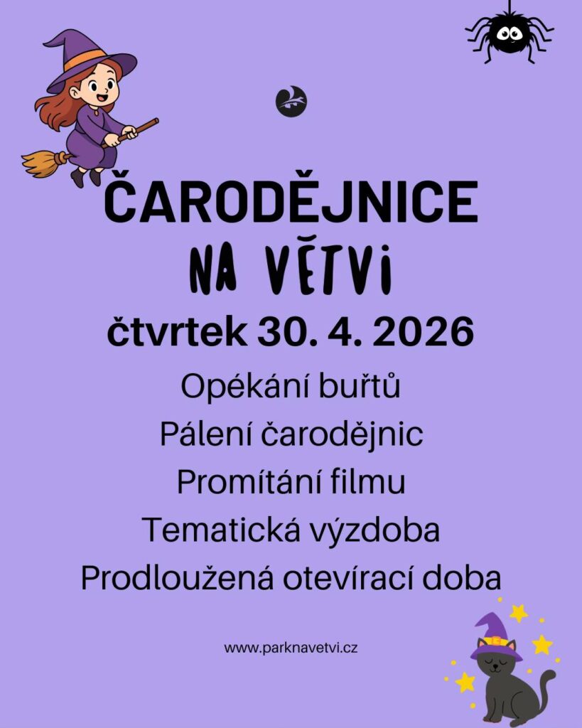 Celodenní program v lanovém parku nabídne pohodovou čarodějnickou atmosféru. Těšit se můžete na tradiční pálení čarodějnic, opékání buřtů nebo večerní promítání filmu. Areál bude výjimečně otevřený až do noci, takže si každý může užít den i večer podle svého.