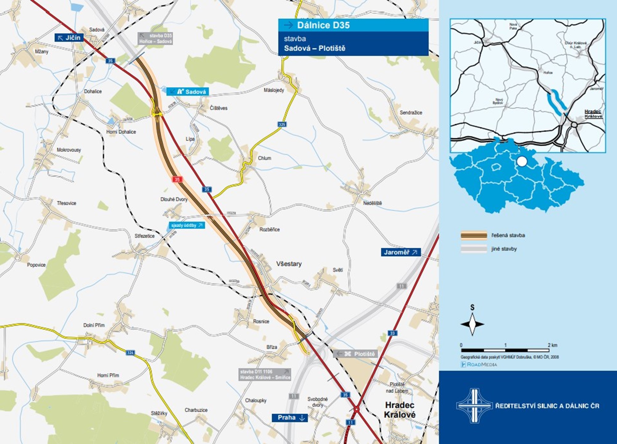 Od loňského listopadu ŘSD na trase D35 buduje úsek mezi Hořicemi na Jičínsku a Sadovou. Hotový má být do konce roku 2025. Aby úsek nekončil u Sadové v polích a řidiči jej mohli využívat již od konce roku 2025, bude muset zhotovitel navazujícího úseku Sadová - Plotiště prioritně během jednoho roku vybudovat zhruba kilometrový úsek u Sadové. Dálnice D35 Hořice - Sadová se tím bude moci u Sadové provizorně napojit na silnici první třídy I/35.