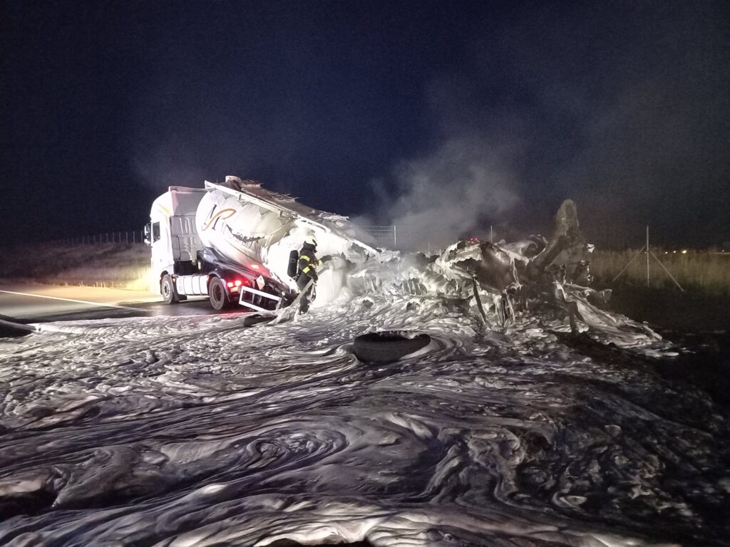 Cisternu se z místa požáru podařilo odtáhnout dnes po 07:00. Hasiči ještě dnes ráno hasili drobná ohniska požáru.