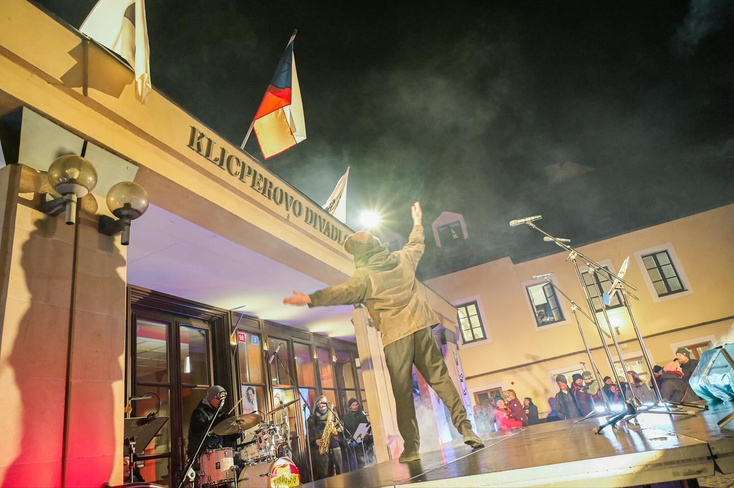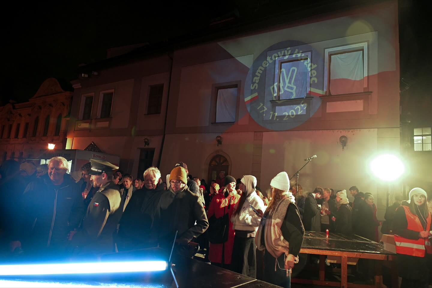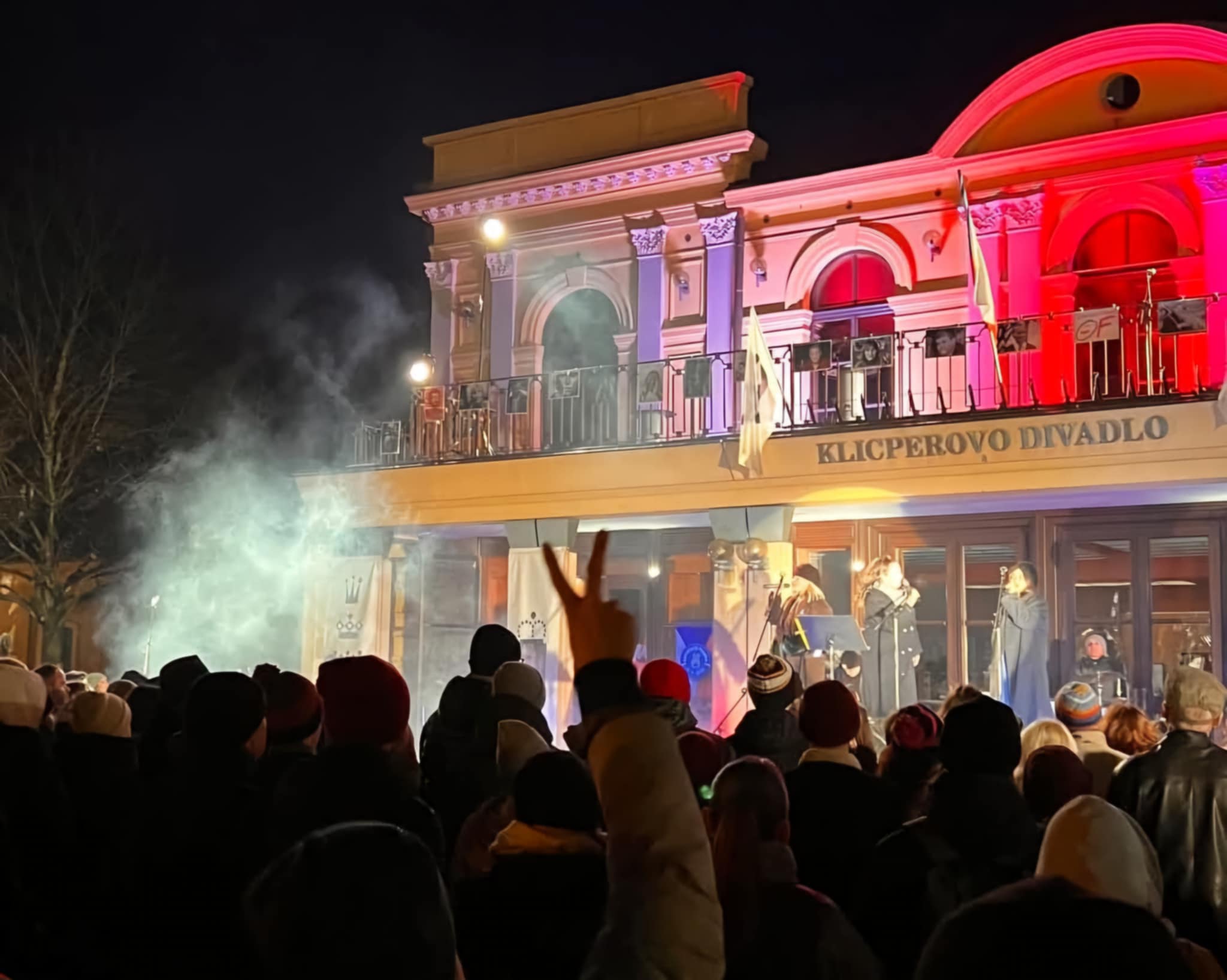 "Happening před divadlem je tradiční setkání pod širým nebem s hudbou, světly a živou atmosférou připomínající ducha listopadu 1989. Odhaduji, že se sešlo okolo tisícovky lidí. Je to určitě více než v předchozích letech. Naštěstí se počasí umoudřilo," řekl ČTK mluvčí Klicperova divadla v Hradci Králové Martin Sedláček.