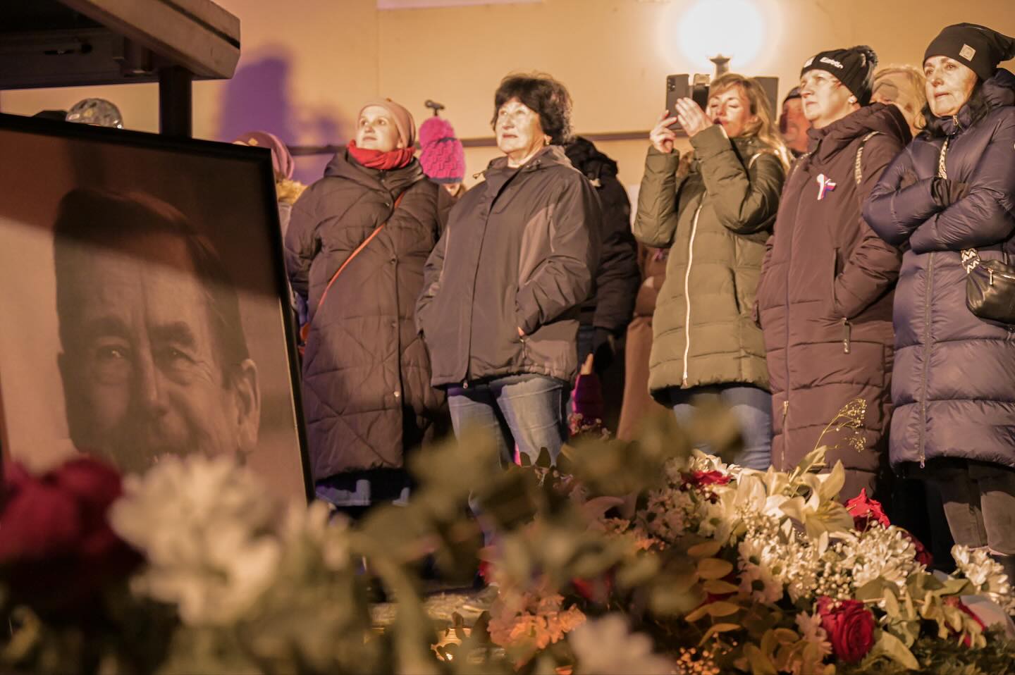 Setkání ve Sboru kněze Ambrože začalo okolo 17:00, součástí programu bylo také rozsvícení srdce pro Václava Havla na věži sboru, zazněly i písně Karla Kryla.