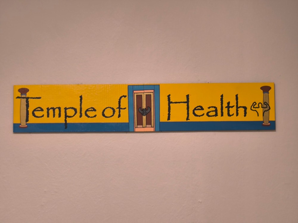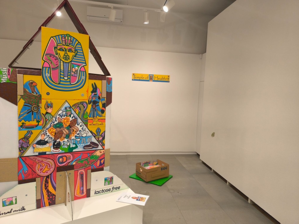 Druhá výstava s názvem Temple of Health, tedy Chrám zdraví, která je k vidění v prostoru Na bidýlku II, nabízí originální a hravé dílo mladé výtvarnice Daniely Ponomarevové (1998). Podle kurátorky této expozice Anny Horák Zemanové autorka dlouhodobě rozvíjí svůj tvůrčí koncept, který nazývá „postpouťové atrakce“. Zaměřuje se na vizuální svět poutí a lunaparků, jejich barvitost, grafickou expresi i kýč a tuto estetiku převádí do svého díla. Zajímají ji efekty, reklamní jazyk nebo jak principy vizuálního spektáklu formují naše vnímání.