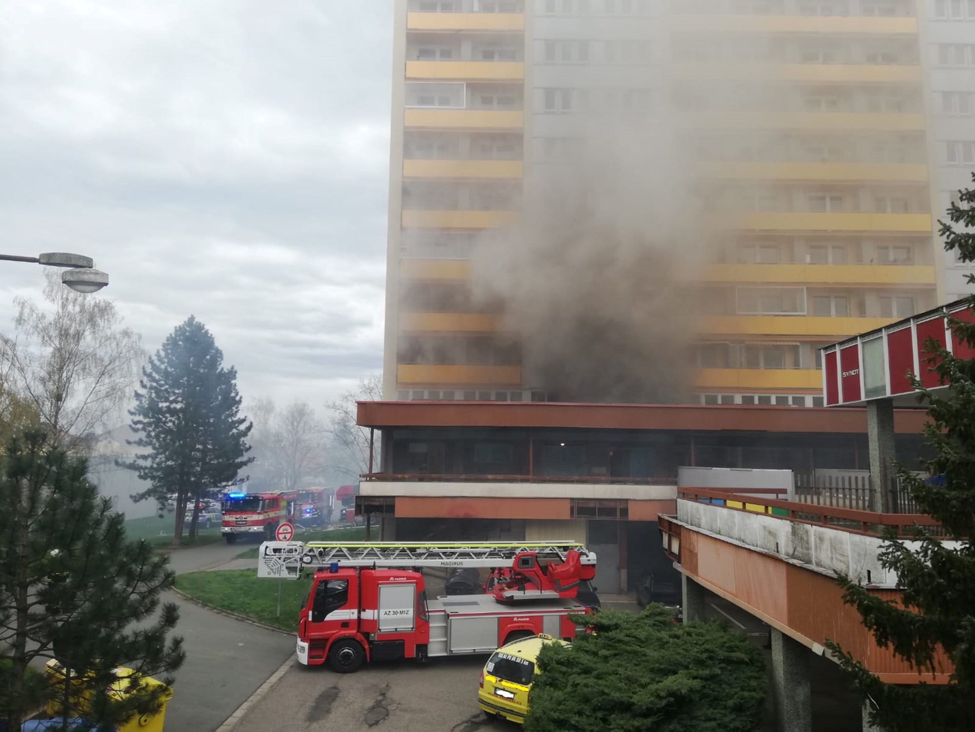 FOTO: V paneláku na Benešovce hořel byt, osm lidí se nadýchalo kouře
