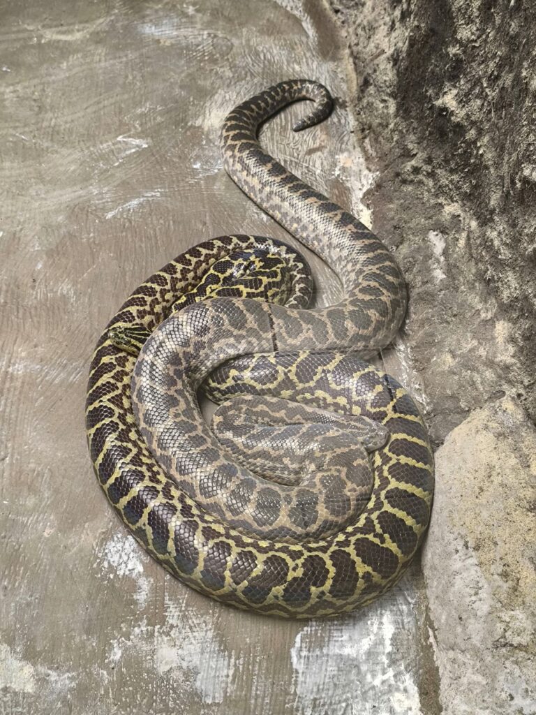 Řekl bych, že je to mamba zelená. Máme tady otce tří mláďat, která se u nás narodila a jsou umístěna v našem zázemí. Pyšní jsme i na menší druh chřestýšů, kteří by se dali považovat za raritní. Nesmím zapomenout ani na brazilské užovky, jež jsou největší na světě. Kromě rodičů zde máme dvanáct mláďat.