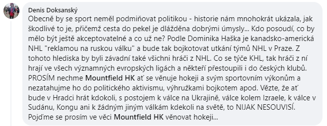 🧵 Dnes se v médiích objevily informace, že by v hradeckém hokejovém klubu @MountfieldHK měl hrát hráč z ruské KHL. Kluby a hráči KHL pravidelně vyjadřují podporu ruské armádě, která na Ukrajině páchá válečné zločiny. pic.twitter.com/Hb6RNr43FD