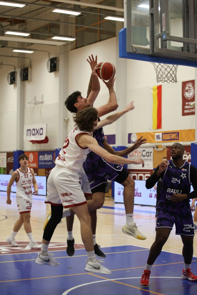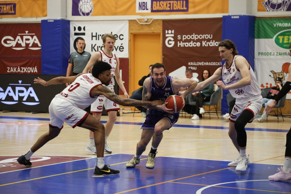 Hradec přitom nezačal ideálně, ale postupně převzal kontrolu nad zápasem. Po úvodních bodech hostů se chytil především střelbou z dálky – trefili se Škranc, Merta i Dvořák a domácí si už v první čtvrtině vypracovali solidní náskok 22:15.