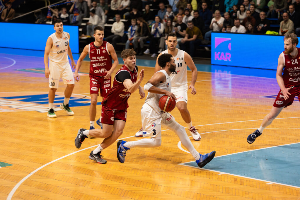 Hradec začal výborně a hned v úvodu se ujal vedení po koši kapitána Alessandra Petrice. Aktivní vstup potvrdil Martin Roub, který si rychle vybudoval útočný rytmus a během prvních minut nasázel osm bodů. Hosté si výborně půjčovali míč a dokázali nacházet volné střelce kolem koše, zatímco Ostrava se spoléhala hlavně na individuální výkony. První čtvrtinu uzavřela povedená akce Popoviće s Chatmanem a GAPA vedla 25:19.