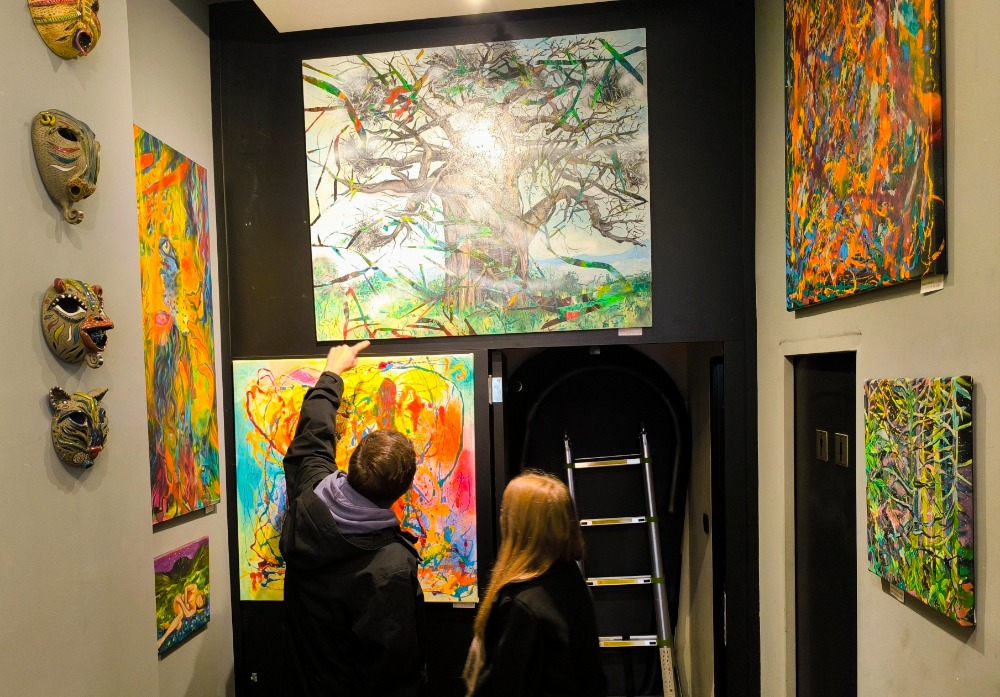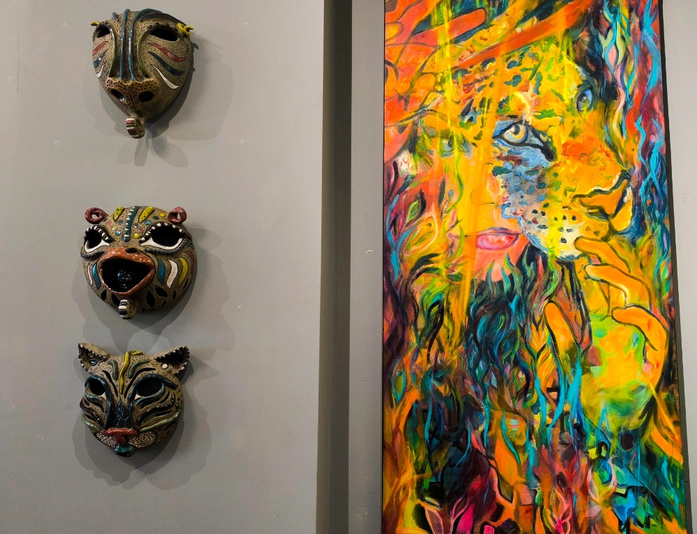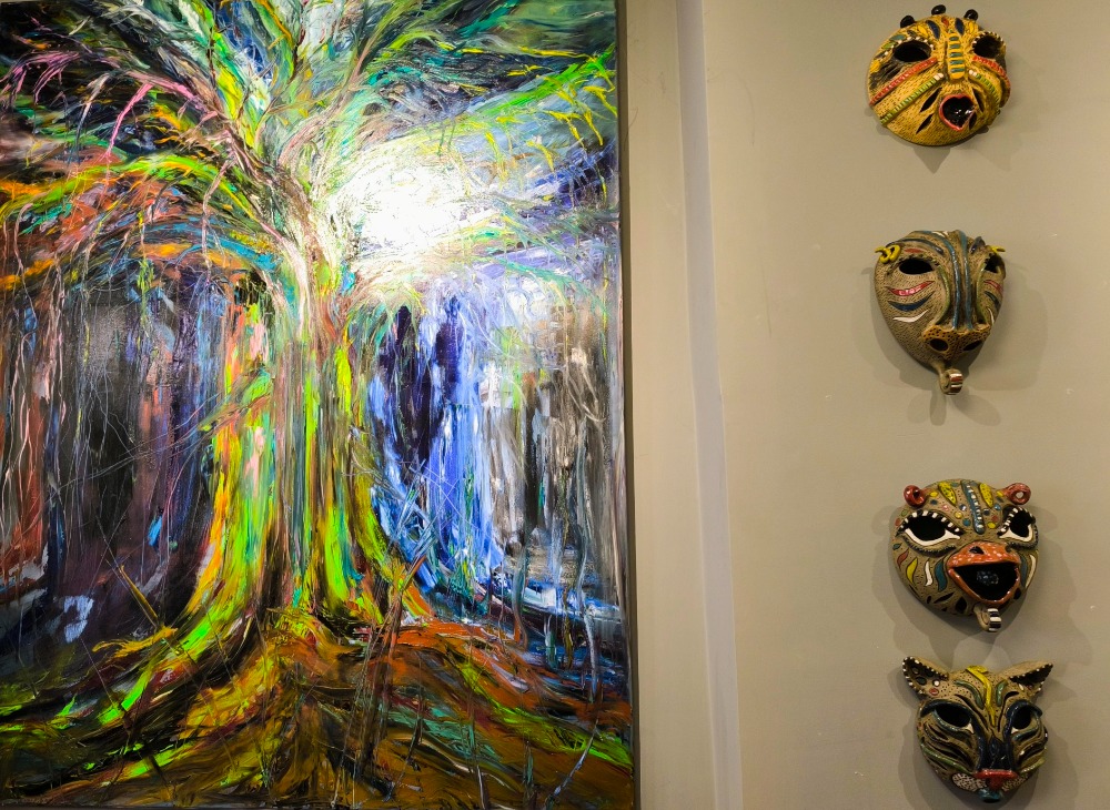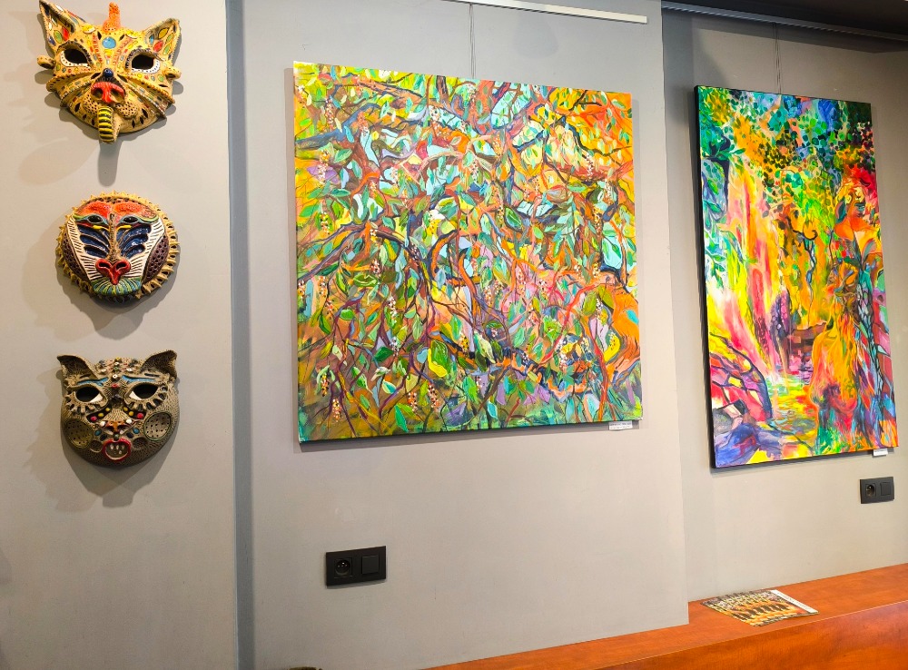 „Tančí mezi živly, mezi situacemi, které ho nečekaně potkávají i mezi samotným životem. Může být také maskován k nepoznání, hrát si na šamana či se proměnit ve zvíře. Prostě může být kýmkoliv a zároveň zůstat tím, kým skutečně je,“ řekla malířka, jež tento způsob života divákům v galerii servíruje v pestrobarevných obrazech, jež vznikly v prostředí, které ji výrazně ovlivnilo a změnilo její dosavadní život. Každoročně totiž navštěvuje Jihoafrickou republiku, kde již byla sedmkrát a okouzlila ji natolik, že se do ní chce stále vracet, nechat se inspirovat její přírodou, tamními lidmi i kulturou tak odlišnou od té středoevropské.