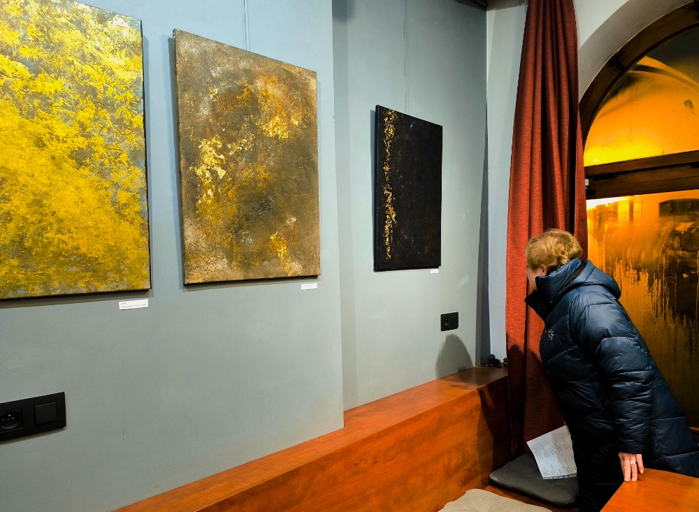 Soubor maleb v expozici Nad jedním světem malířky Terezy Andělové, která v Galerii Václava Havla potrvá do 1. února, je prodejní. Malby vznikly primárně pro tuto výstavu a její návštěvníky.
