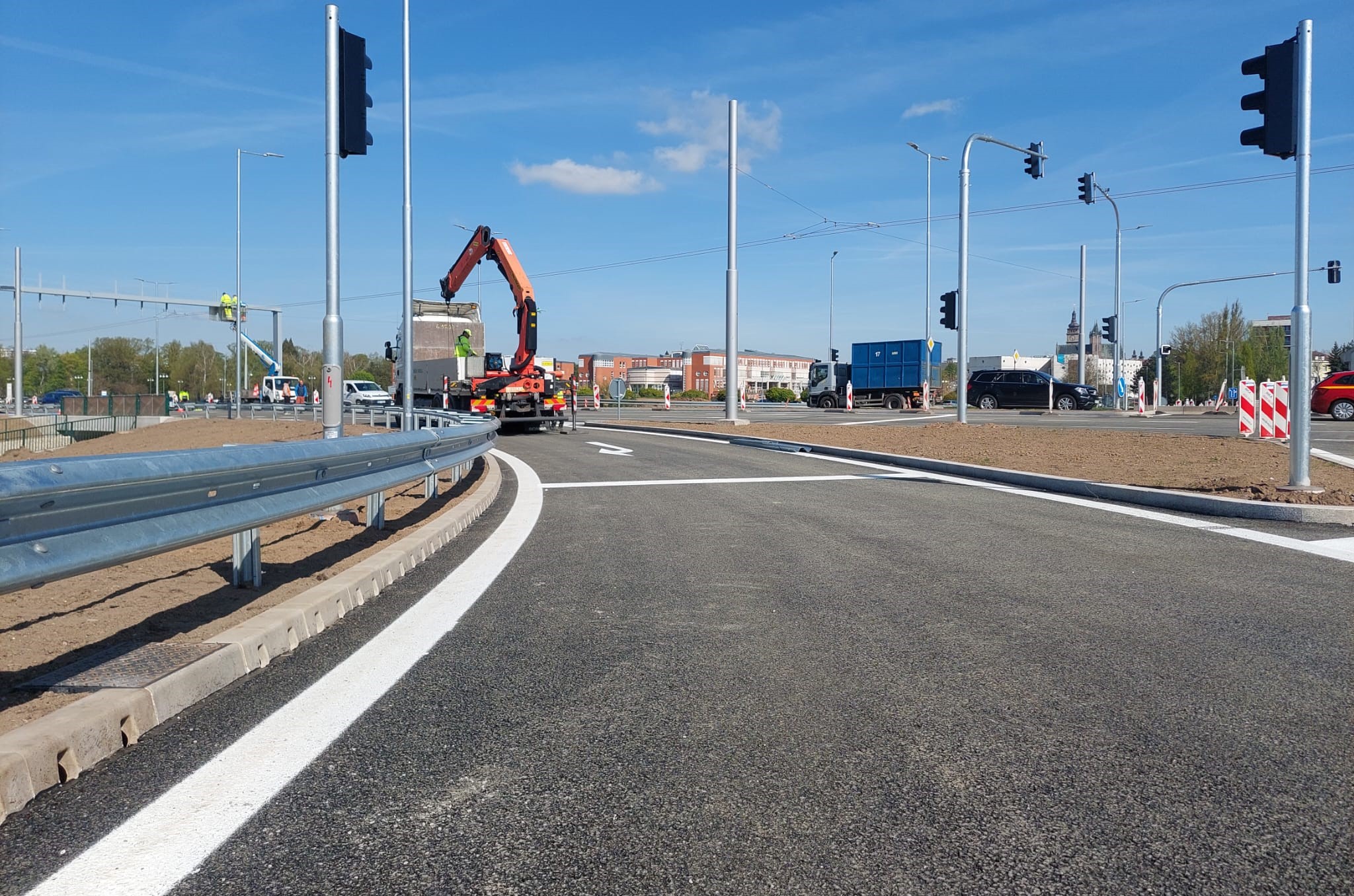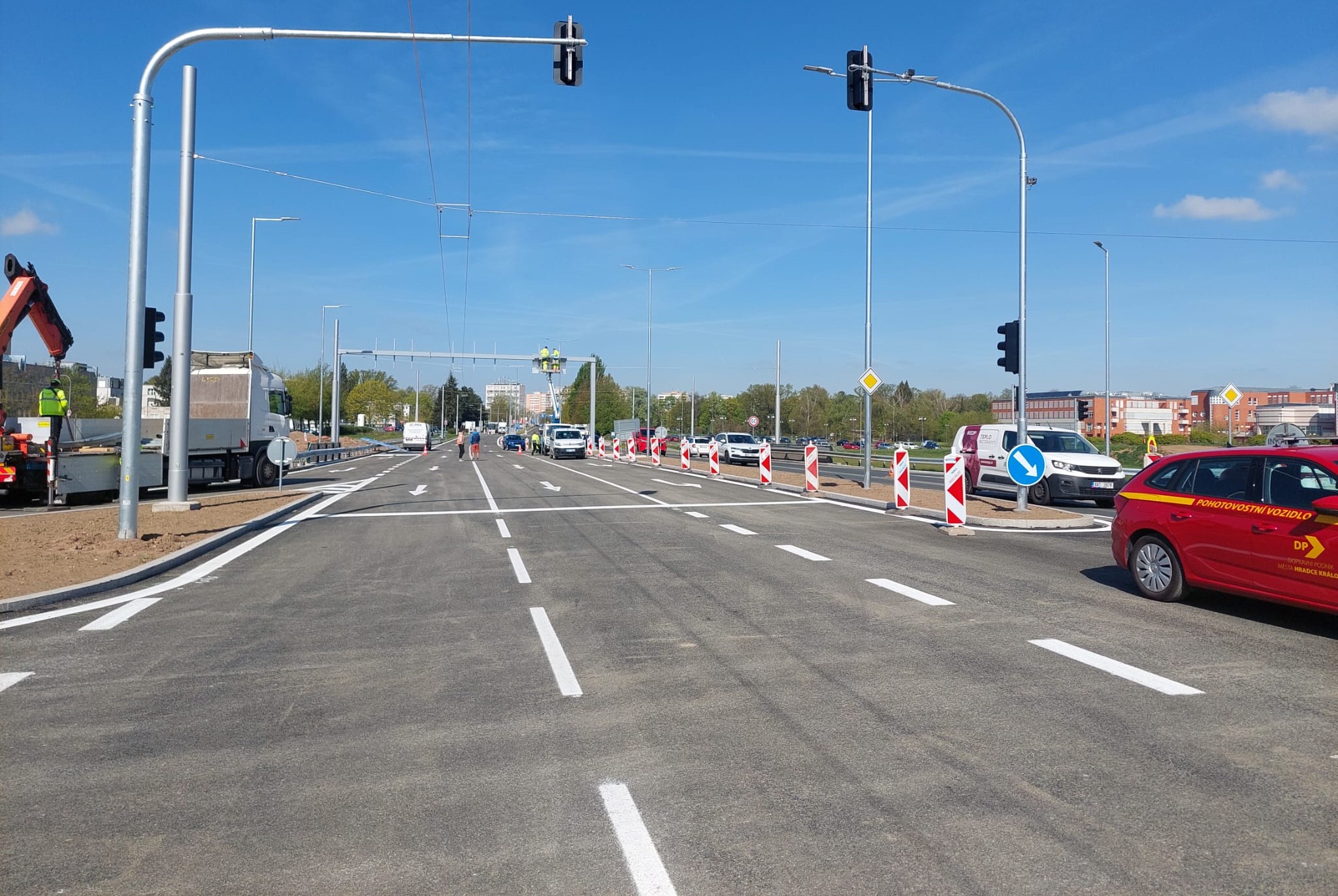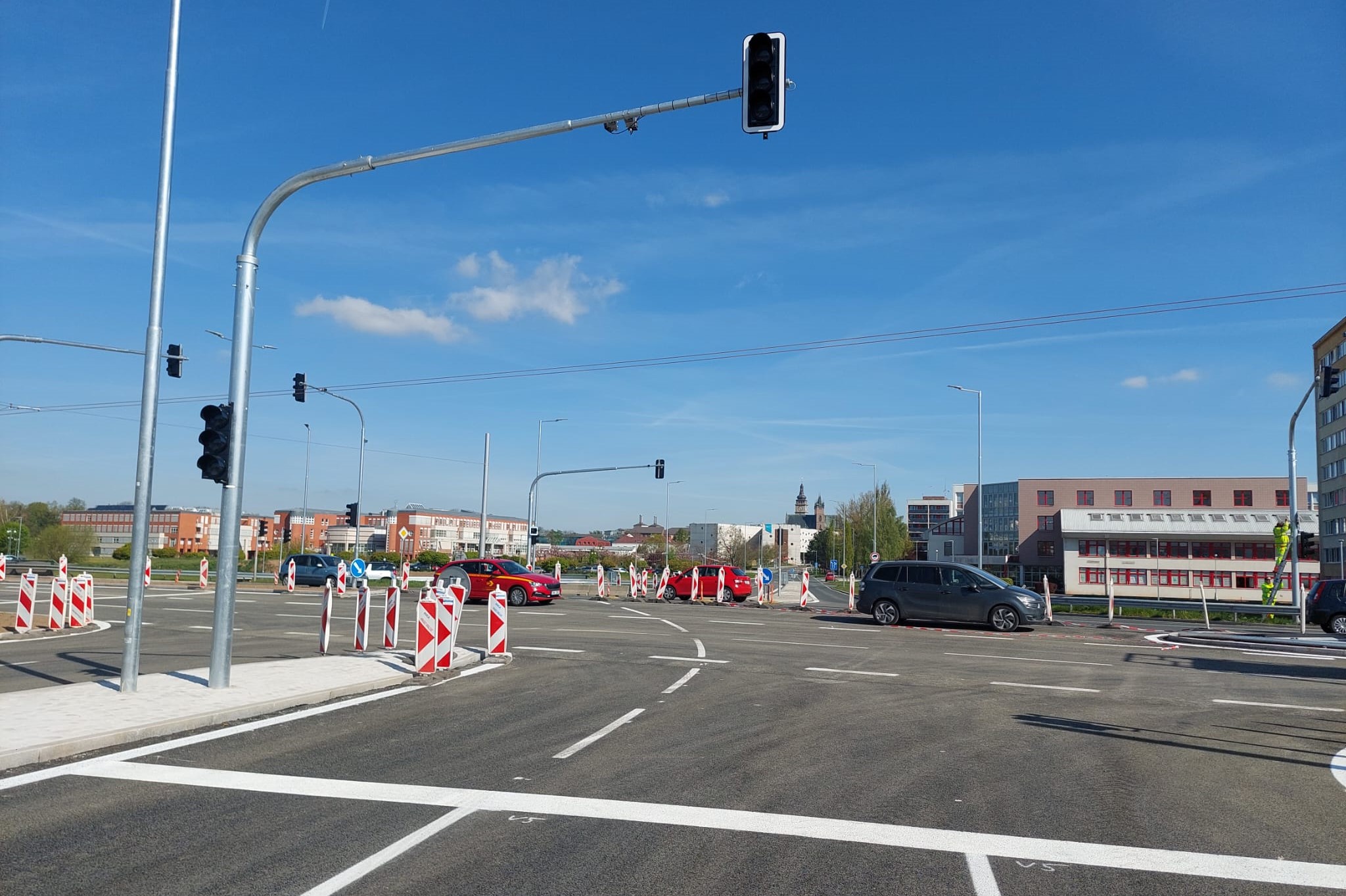 Pro auta se semaforová křižovatka, přes niž vede velká část dopravy z největšího hradeckého sídliště Moravské Předměstí do centra města, otevře proti plánu o tři a půl měsíce dříve. Urychlení stavby umožnilo lednové úplné uzavření části Zborovské ulice. Původně se v ulici plánovalo částečné zachování provozu.