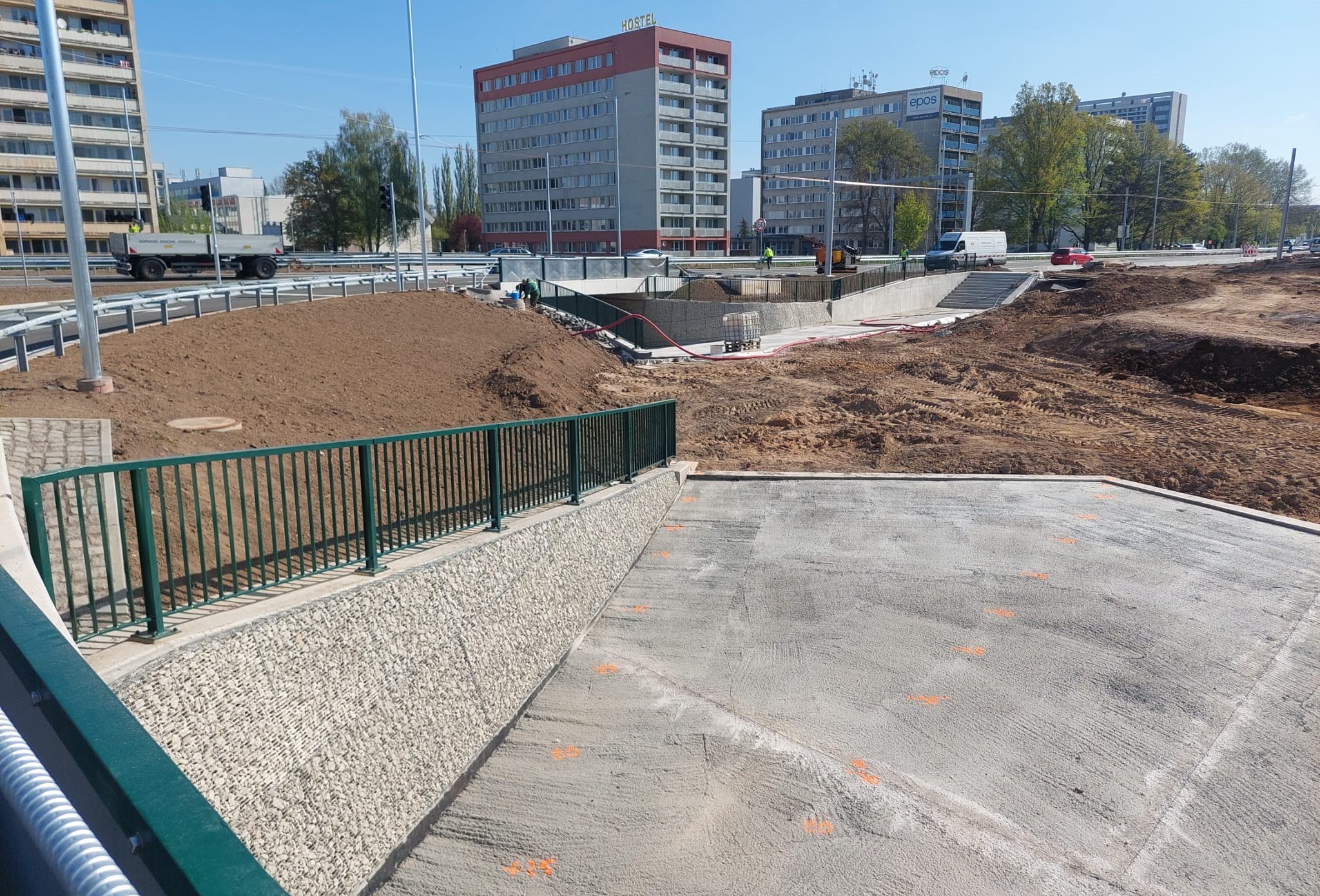 "Do konce května chceme otevřít podchod pod ramenem Milety směrem k Labi, a to i s napojením cyklostezek a s novou zastávkou MHD u fakultní nemocnice. Chodci a cyklisté tím získají bezpečné propojení ve směru od nemocnice a Moravského Předměstí do centra města," řekl stavbyvedoucí Petr Mareš z firmy M-Silnice