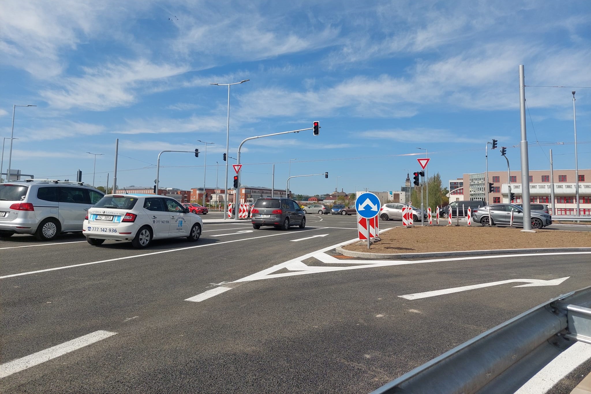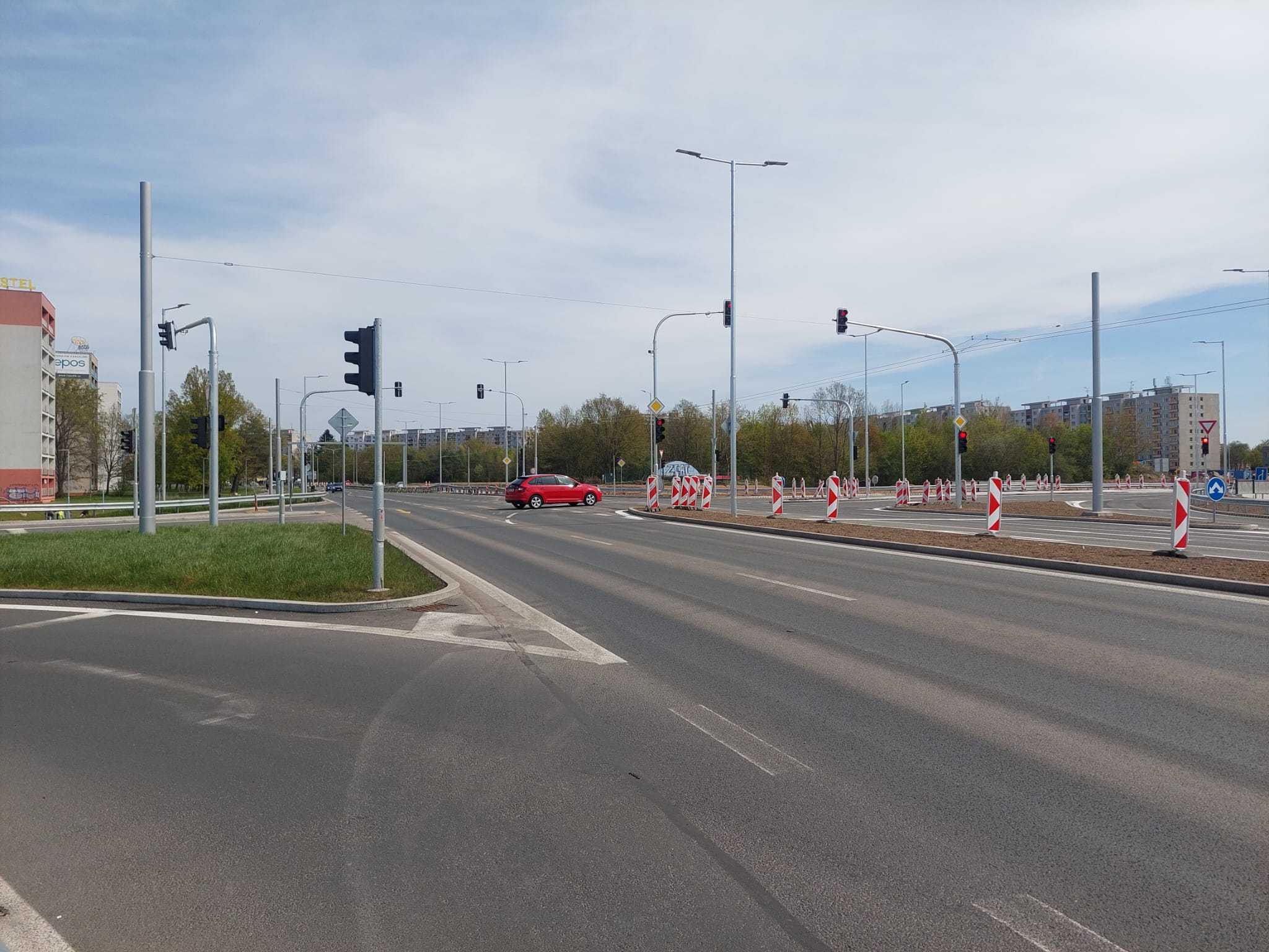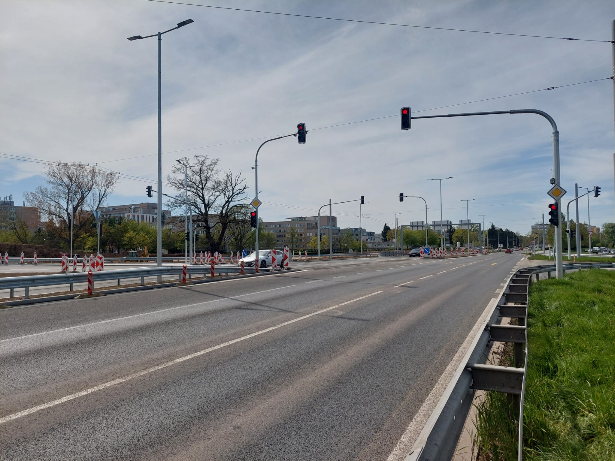 Změna je patrná také u takzvané malé Milety u výjezdu z fakultní nemocnice. Provoz tam nově řídí semafory. V létě by se na malou Miletu měla napojit také nová silnice od Benešovy třídy.