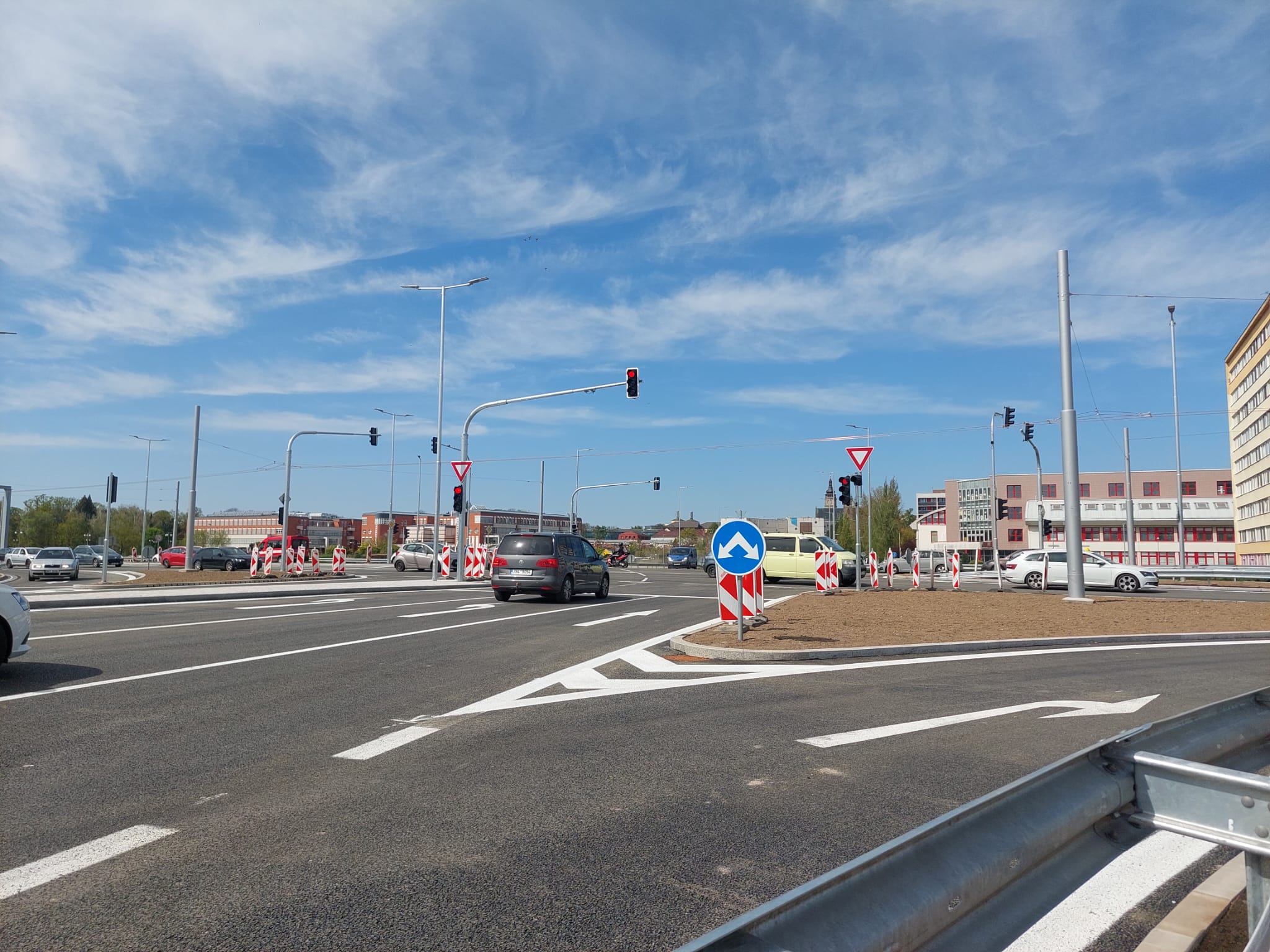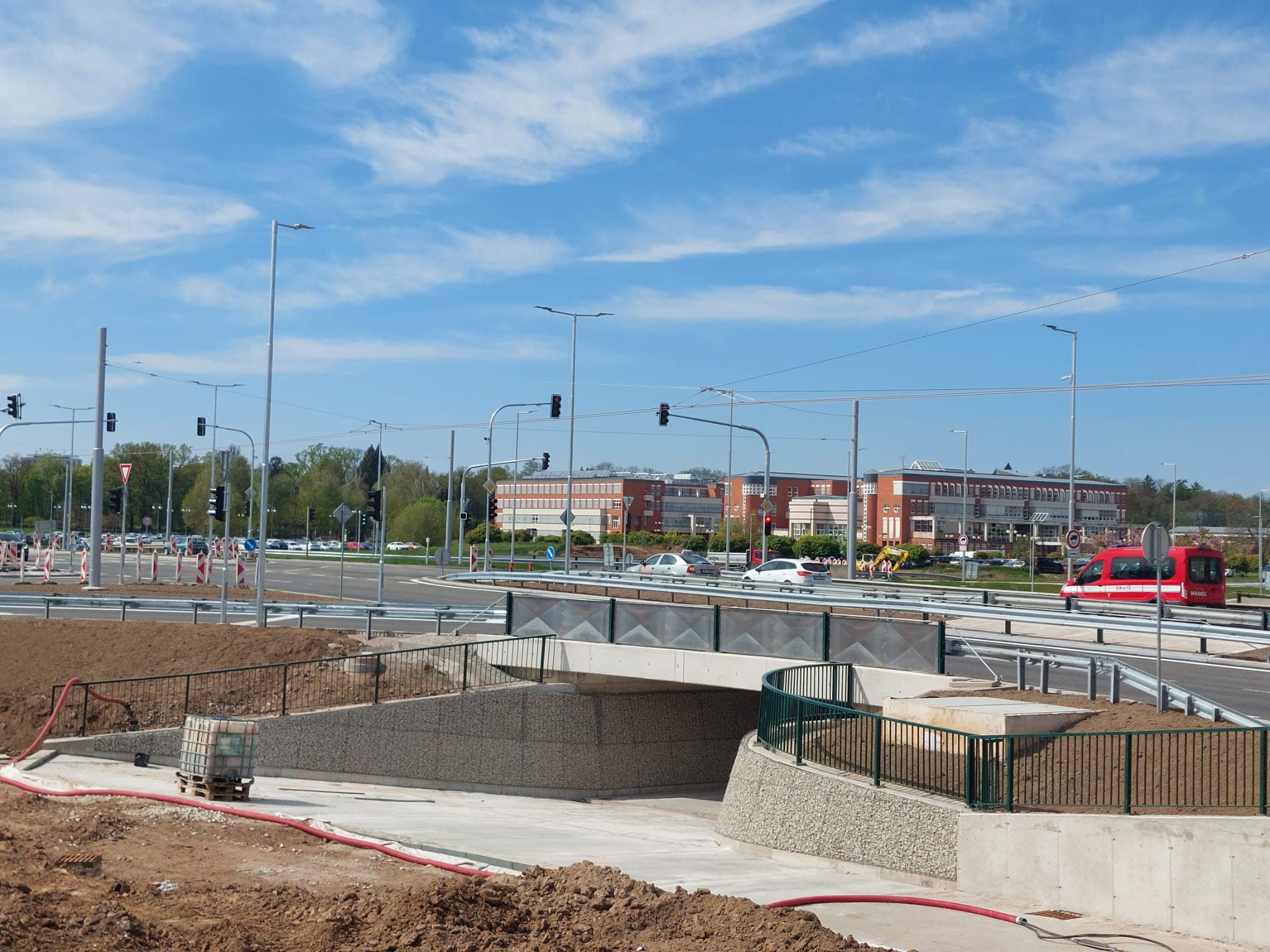 Po více než dvou letech se znovu otevřel průjezd křižovatkou ze Zborovské do Hradecké ulice. Výrazně se zjednodušila i dostupnost fakultní nemocnice, kam je nově opět možné odbočit i ze Sokolské. Právě nemožnost některých odbočení patřila během rekonstrukce k největším komplikacím, i když průjezd po okruhu zůstal po celou dobu zachovaný alespoň v omezeném režimu.