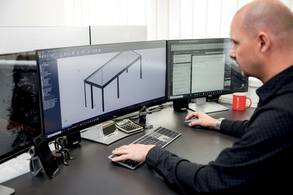 Výsledkem jsou například hliníkové ploty, které představovaly první krok k modernizaci produkce a příležitosti spojit tradiční hodnoty s moderními materiály. Nebo bioklimatické pergoly s otočnými lamelami, kde každý detail (včetně skrytého pohonu lamel) prošel desítkami testů a vylepšení.