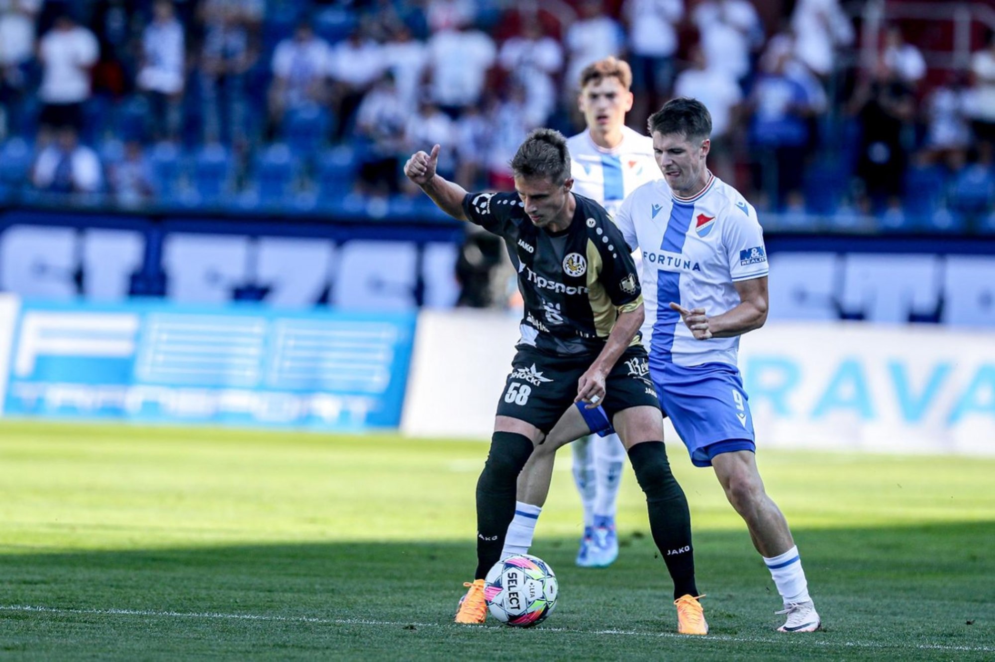 Sedm minut před koncem už stadion skoro jásal. Po teči jednoho z hradeckých hráčů šel míč do protipohybu Zadražila, Šín ho chtěl ještě doklepnout do branky, hostující brankář ale včas zasáhl.