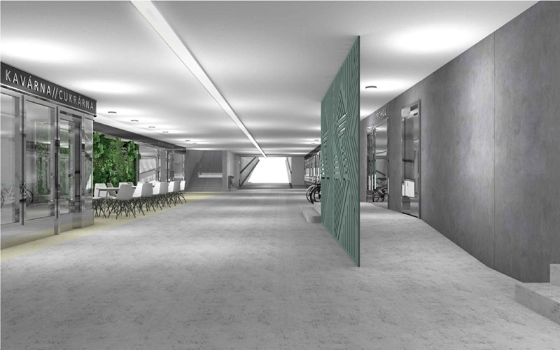 V současnosti v podchodu najdete toalety, obchody s textilem, cukrárnu s kavárnou a inzertní výlohy. Po rekonstrukci by se měl počet komerčních prostor uvnitř podchodu zvětšit. Radnice počítá s odstraněním kovových výloh, výměnou podlah a osvětlení, jiným uspořádáním toalet. Kavárna by se měla více otevřít do prostoru. Podchod by se měl stát i místem pro setkávání lidí. Část podchodu by mohla fungovat jako výstavní galerie.