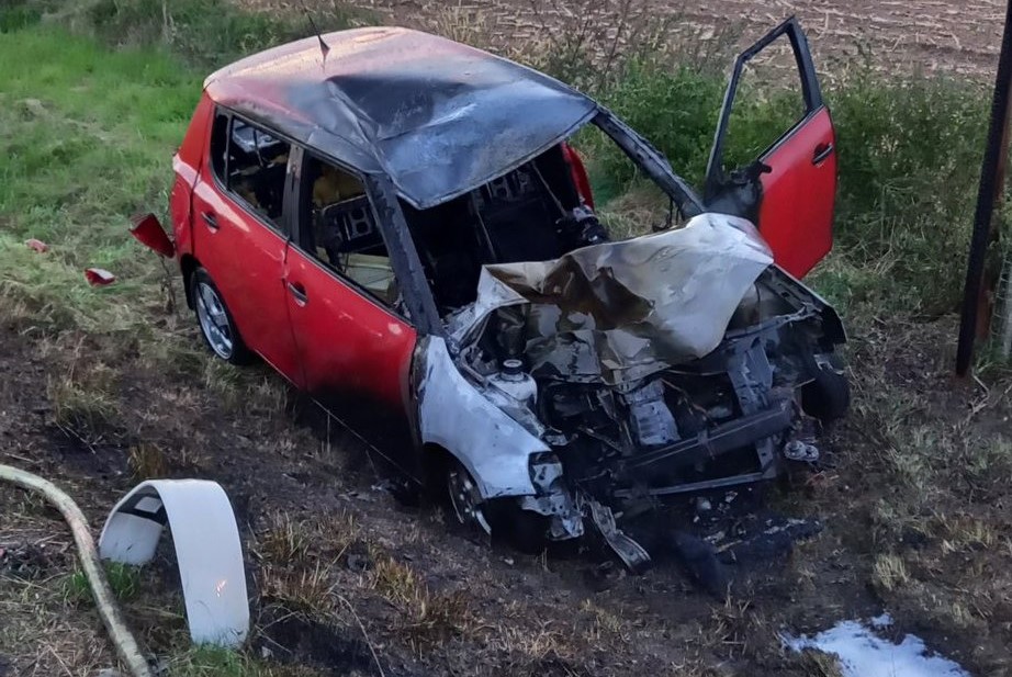 Automobil po nárazu vzplál. Hasiči z Královéhradeckého kraje k zásahu vyslali dvě jednotky, které požár zlikvidovaly. Na místě úzce spolupracovali se záchranáři i policií.