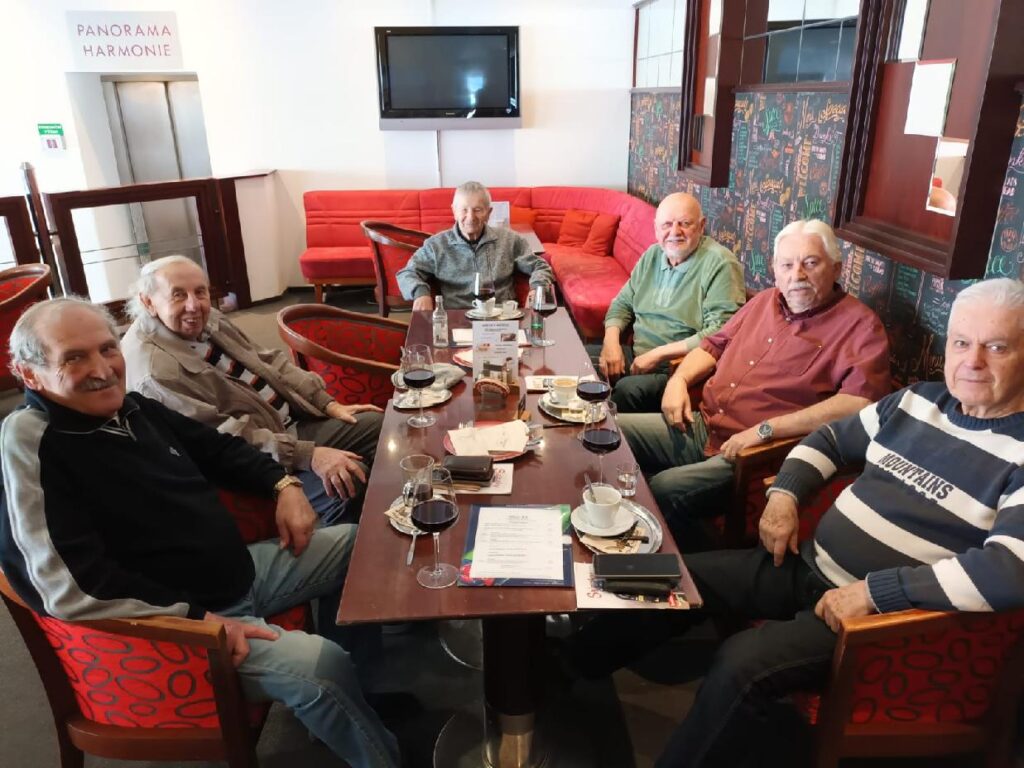 Kromě spontánních návštěv a také občasných pracovních schůzek v různých kavárnách se spisovatel Polák pravidelně týden co týden schází s partou kamarádů v hotelu Černigov; v teplém období roku pak v zahrádce Asenza ve Švehlově ulici. Za ta léta se v této kavárenské společnosti vystřídalo hodně lidí a byť někteří z různých důvodů odpadli, tvrdé jádro stále zůstává. Spolu s Jiřím Polákem do něho patří pánové Jiří Valášek zvaný Sarma, Rudolf Říha, sběratel knih, dokumentů souvisejících s Hradcem Králové, František Pavelka, velký znalec historických automobilů, Oldřich Žaloudek, expert přes jazzovou a country muziku, Václav Koutník, dálkový amatérský cyklista, a Vilém Bušek, někdejší úspěšný obchodník a vášnivý cestovatel. V Černigově mají tito pánové svého oblíbeného číšníka, který přes svůj relativně mladý věk svojí noblesou a úslužností vzbuzuje dojem pana vrchního ze staré dobré prvorepublikové školy. On je již dobře zná a každému z nich bez objednání hbitě donese, co jeho jest – ať již jde o různé druhy kávy, či jen obyčejný tonic.