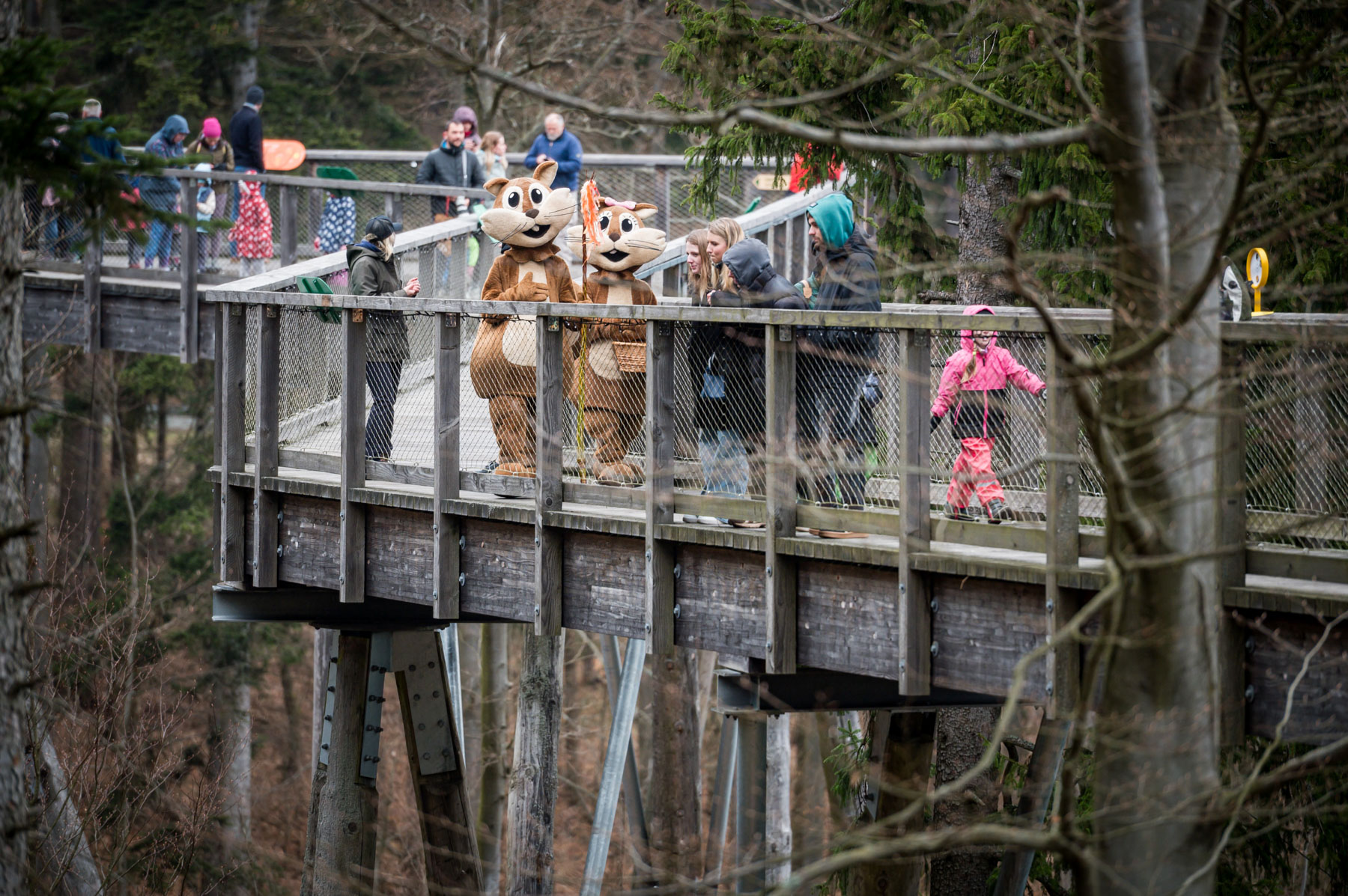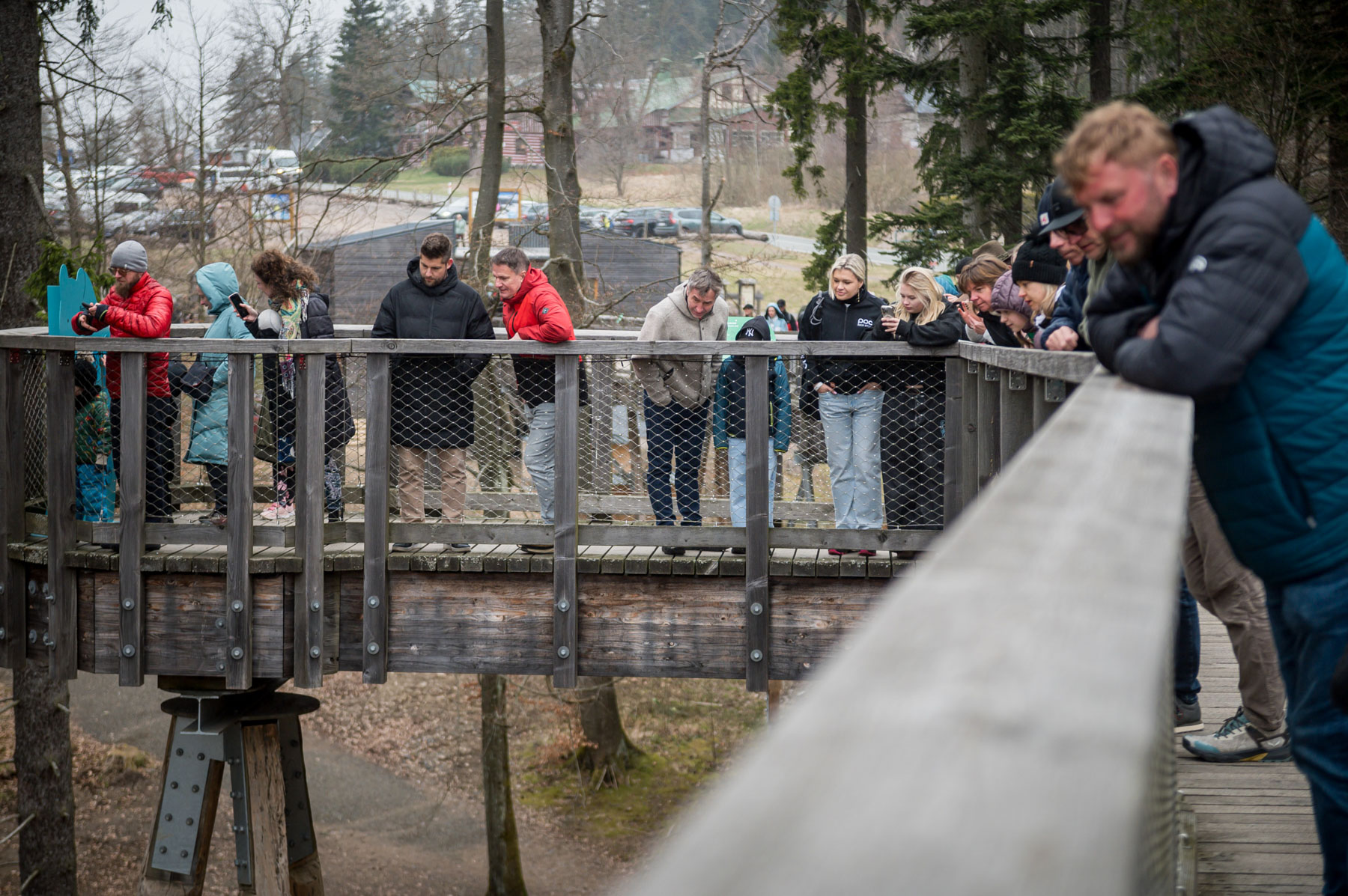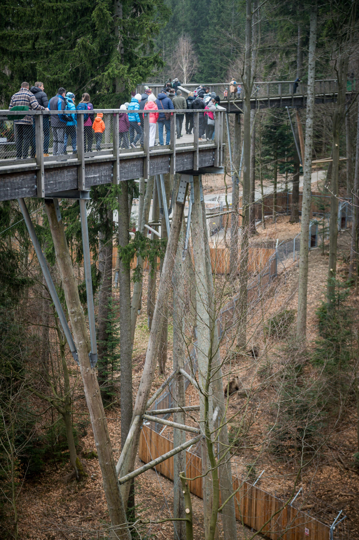 „Ode dneška mají medvědi přístup do velkého výběhu po celý den. Doposud se jednalo o zkušební provoz. Na Stezce korunami stromů Krkonoše lze tak z bezpečné výšky pozorovat medvědy hnědé přímo pod sebou. Přestože počasí není ideální, poprchává, návštěvnost je velmi dobrá," sdělil v sobotu šéf marketingu Stezky korunami stromů Krkonoš Zdeněk Pop. I když nepanovalo zrovna vlídné počasí, první den dorazilo na Stezku přes 1200 lidí.